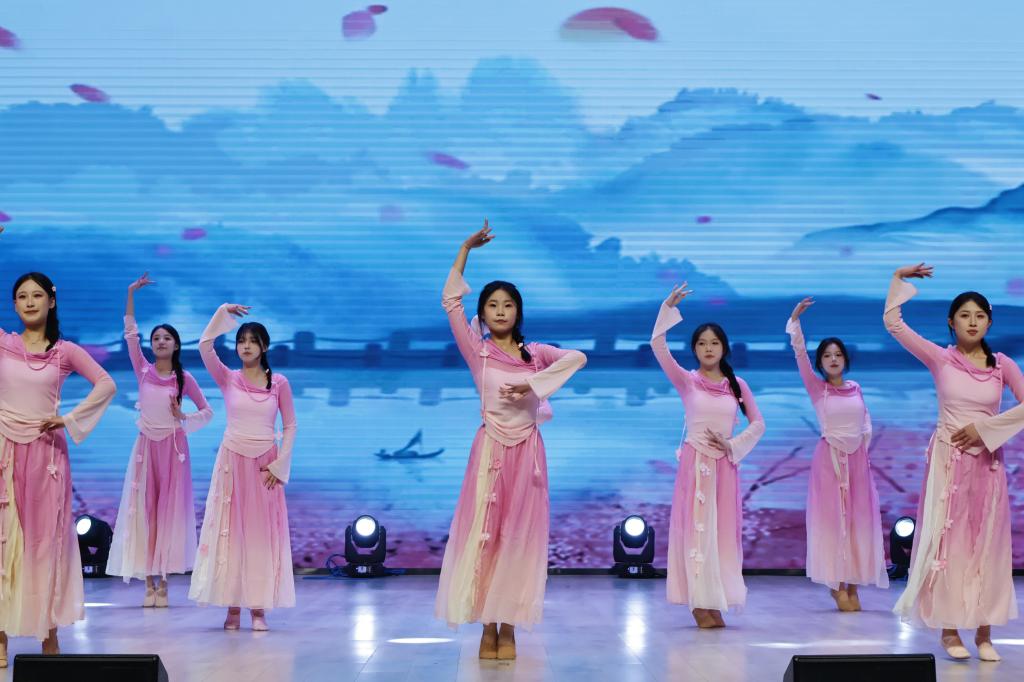 选手演唱间隙,舞蹈社团带来活力舞蹈《WANNABE》,动感舞蹈引全场欢呼。大学生艺术团献民族舞《流水桃花》,柔美舞姿为大赛收官。